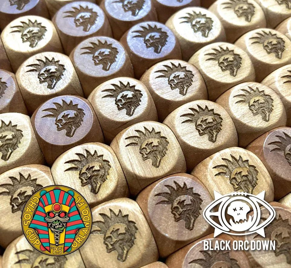 2x D6, 3x Block Dice, 1x D8, 1x D16 and special ‘1 in 6’ None Shall Pass! die